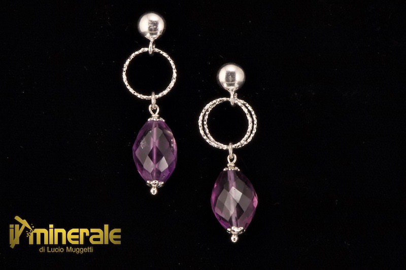 925 rhodium-plated silver drop earrings with faceted amethyst ovals measuring 15x11 mm