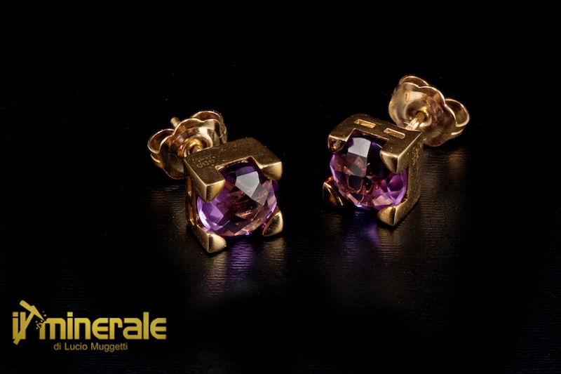 Rose gold plated 925 silver snap earrings with round faceted amethyst briolettes with a diameter of 8 mm