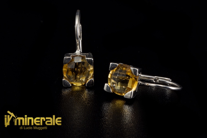 Leverback earrings in rhodium-plated 925 silver with a round faceted briolette of citrine quartz (8 mm diameter)