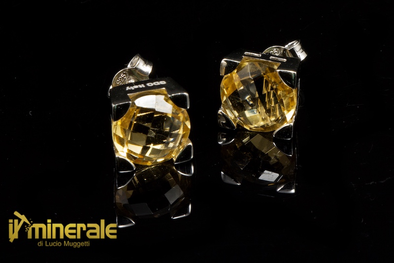 925 rhodium silver clip-on earrings with faceted round citrine quartz briolette with a diameter of 10 mm