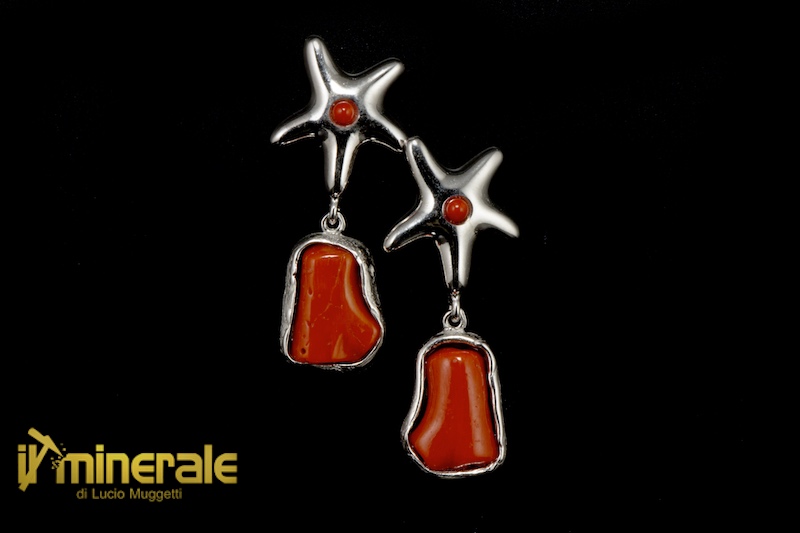 Dangle snap earrings in rhodium-plated 925 silver with raw red coral elements