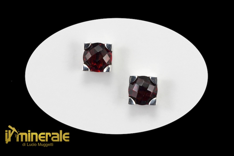 Snap earrings in rhodium-plated 925 silver with round faceted garnet briolettes with a diameter of 10 mm