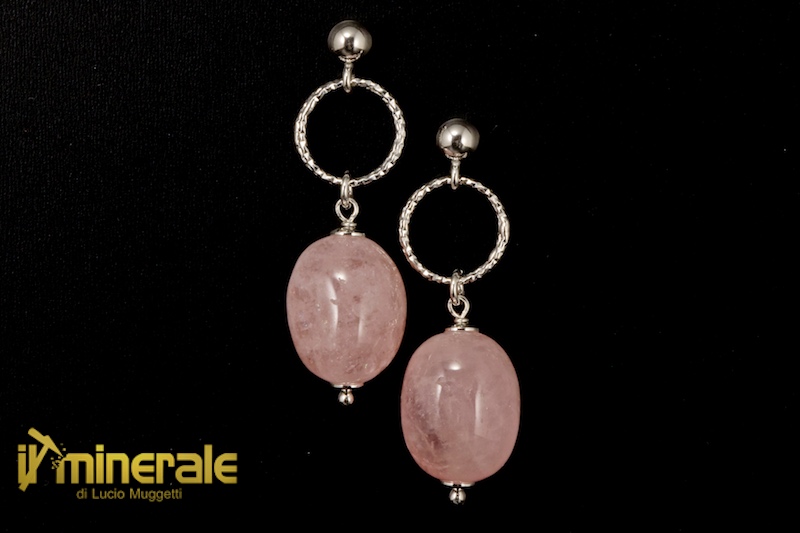 Dangle snap earrings in rhodium-plated 925 silver with barrels of morganite (pink beryl) measuring 14x18 mm