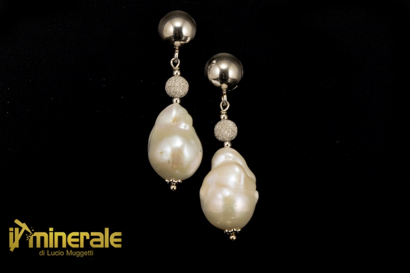Pendant earrings in 925 rhodium-plated silver with freshwater cultured pearls "fireball"