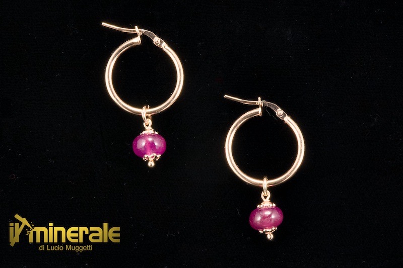 Orecchini pendenti a cerchio in argento 925 placcato oro rosa con rondelle di rubino del diametro di 8 mm