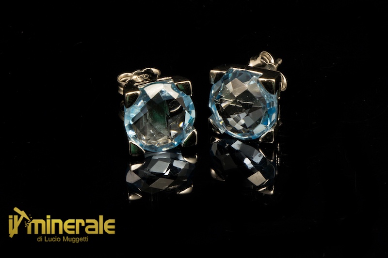 Clip-on earrings in 925 rhodium silver with round faceted blue topaz briolette with a diameter of 10 mm