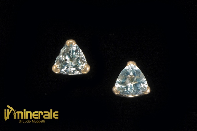 925 rhodium-plated silver stud earrings with triangular faceted blue topaz stones (8x8 mm)