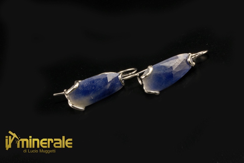 Hook earrings with safety clasp in rhodium-plated 925 silver with faceted plates of non-transparent sapphire