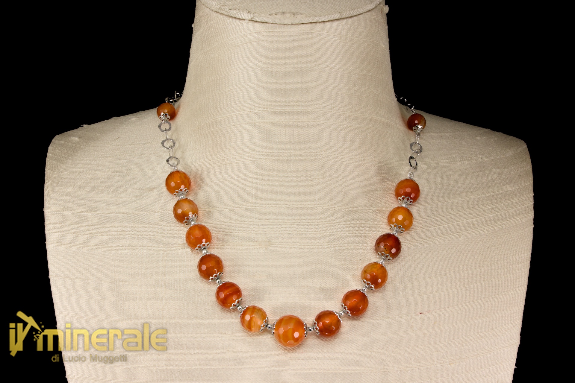 Chain in rhodium-plated 925 silver with faceted carnelian spheres with a diameter of 8, 10 and 12 mm