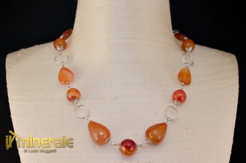 925 rhodium-plated silver chain with natural carnelian (the central stone has a diameter of 14 mm)