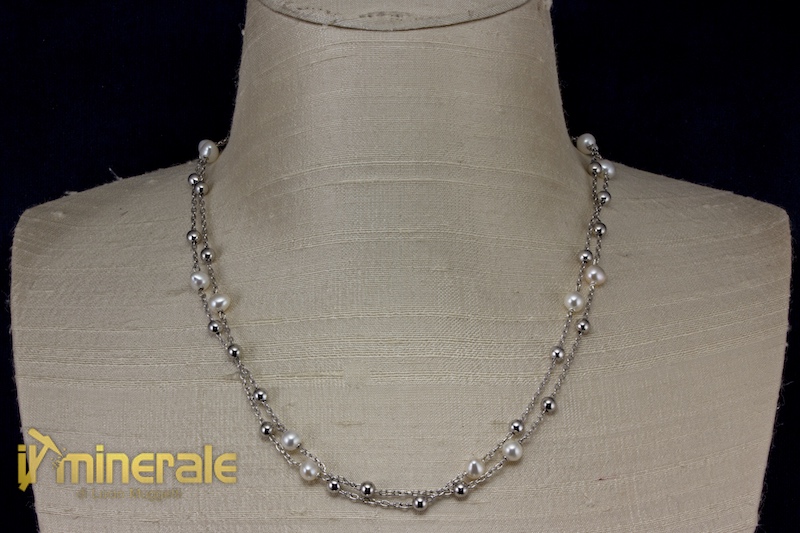 925 rhodium-plated silver chain with irregularly shaped white freshwater cultured pearls (diameter approx. 5.5 mm)