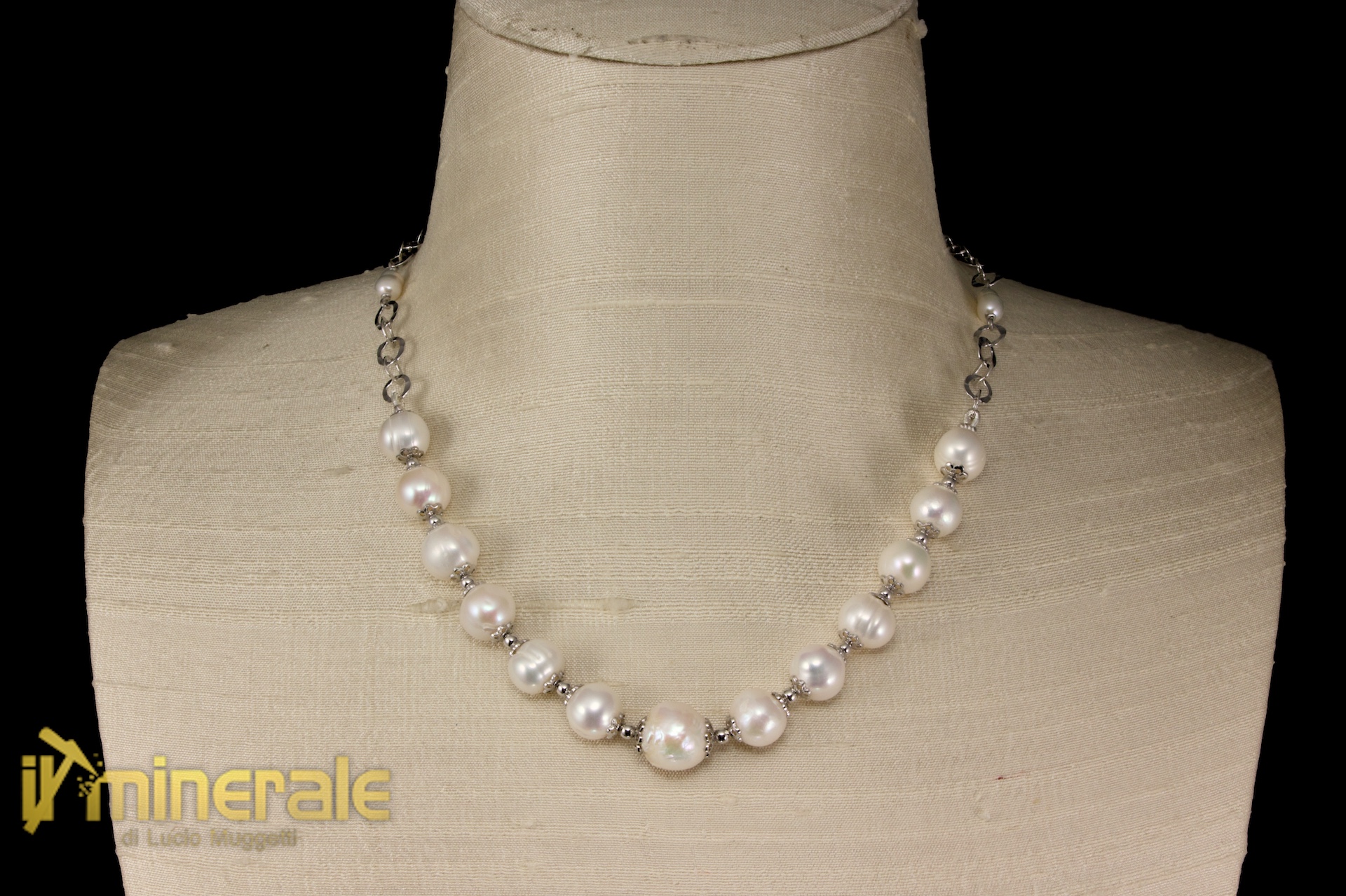 Chain in rhodium-plated 925 silver with irregularly shaped freshwater cultured pearls with a diameter of 10 mm