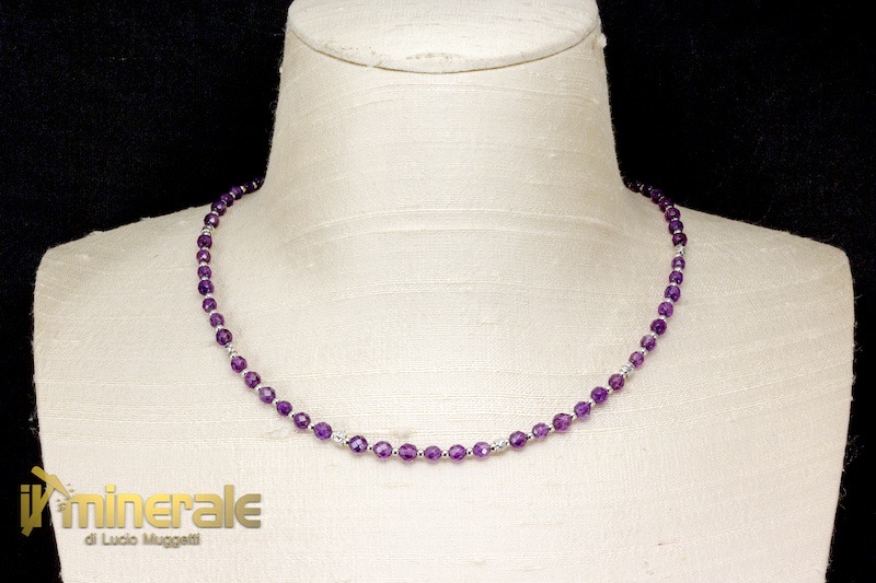 Necklace with faceted amethyst spheres with a diameter of 4 mm