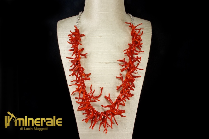 Scalar necklace composed of large fringes of red coral (the central ones are about 40 mm long) of a very intense color
