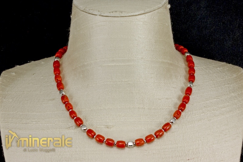 Necklace composed of red coral barrels of the Size from about 5.5x6 to 6x7 mm
