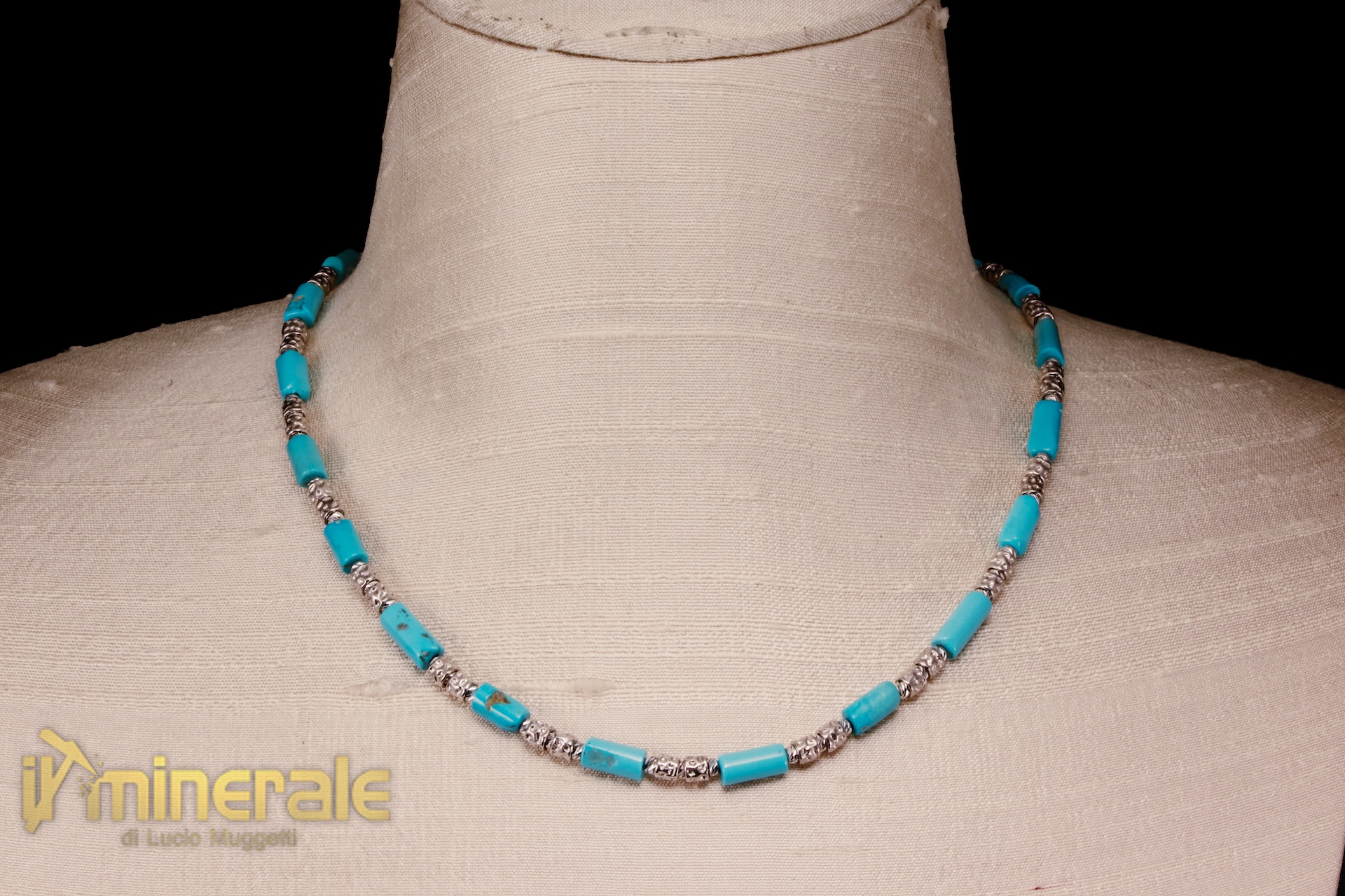 Necklace with natural turquoise cut into a tube (about 4.5x10 mm)