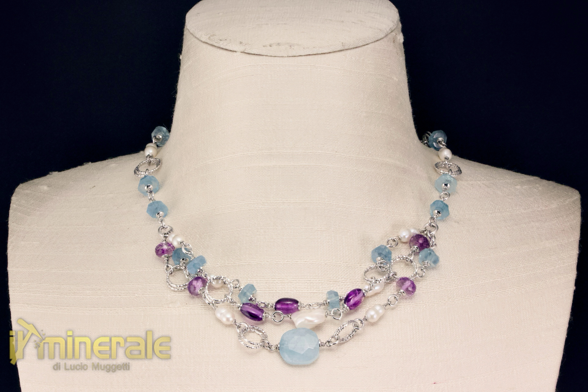 Girocollo con acquamarina, ametista e perle