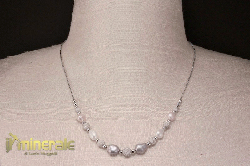 Choker in 925 rhodium-plated silver with various colored freshwater cultured pearls (gray about 7.5x10 mm, white about 6x9 mm and pink about 7 mm of diameter)