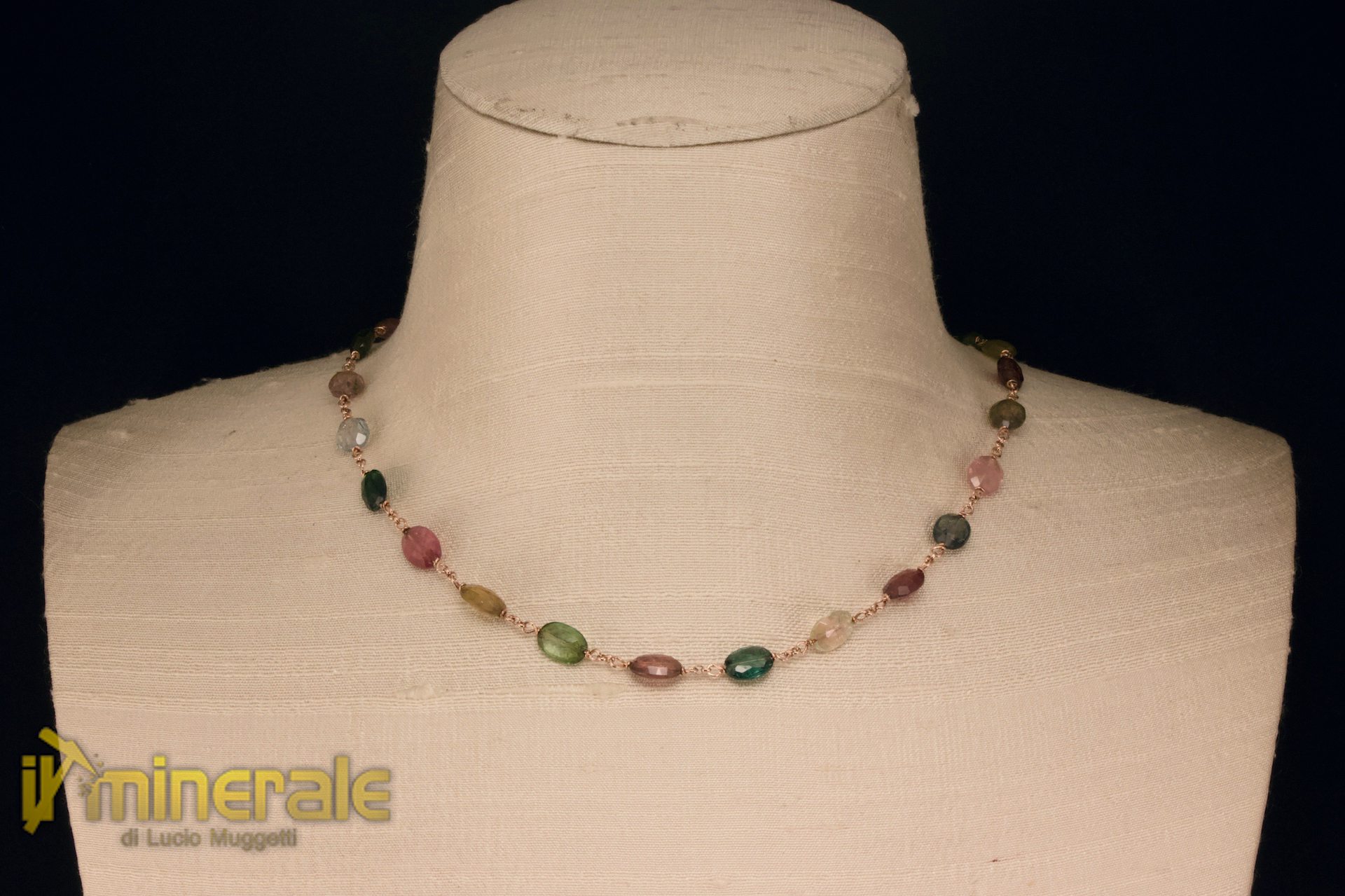 Girocollo in argento 925 placcato oro rosa con lenti di tormalina varicolore della dimensione di 6x8 mm