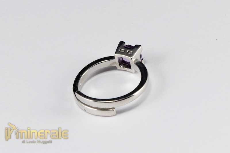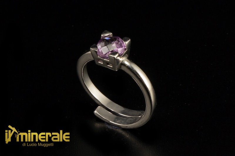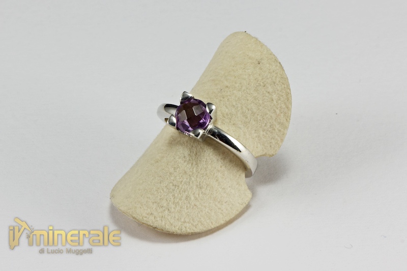 Rhodium plated 925 silver ring with a round faceted amethyst briolette (diameter 6 mm)