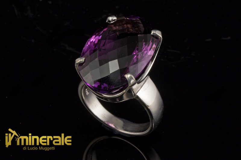 Ring in rhodium-plated 925 silver with an oval faceted briolette (17x26 mm) of amethyst