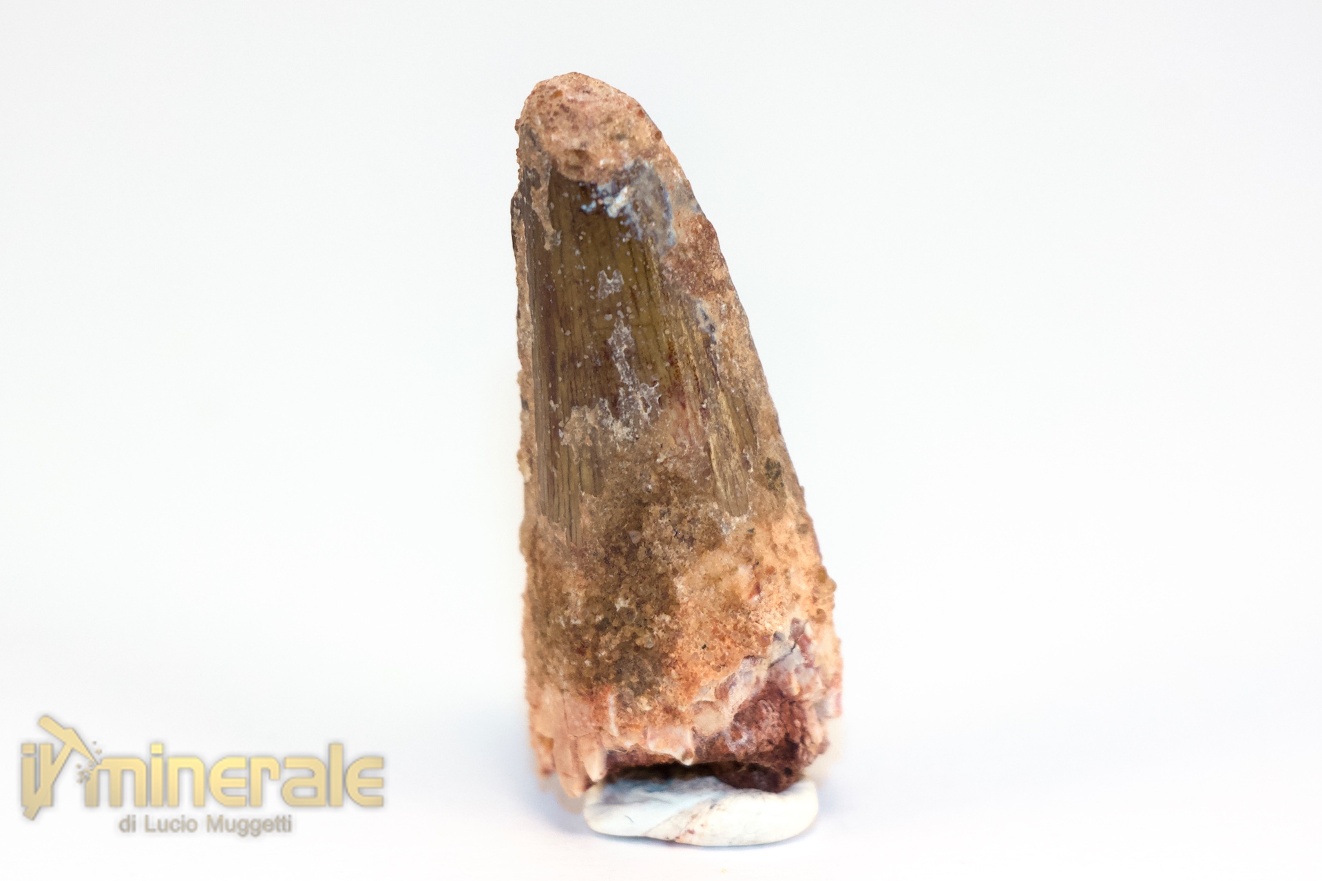 Dente fossile senza matrice di "Spinosaurus aegyptiacus" (gigantesco dinosauro carnivoro teropode). Il dente è integro