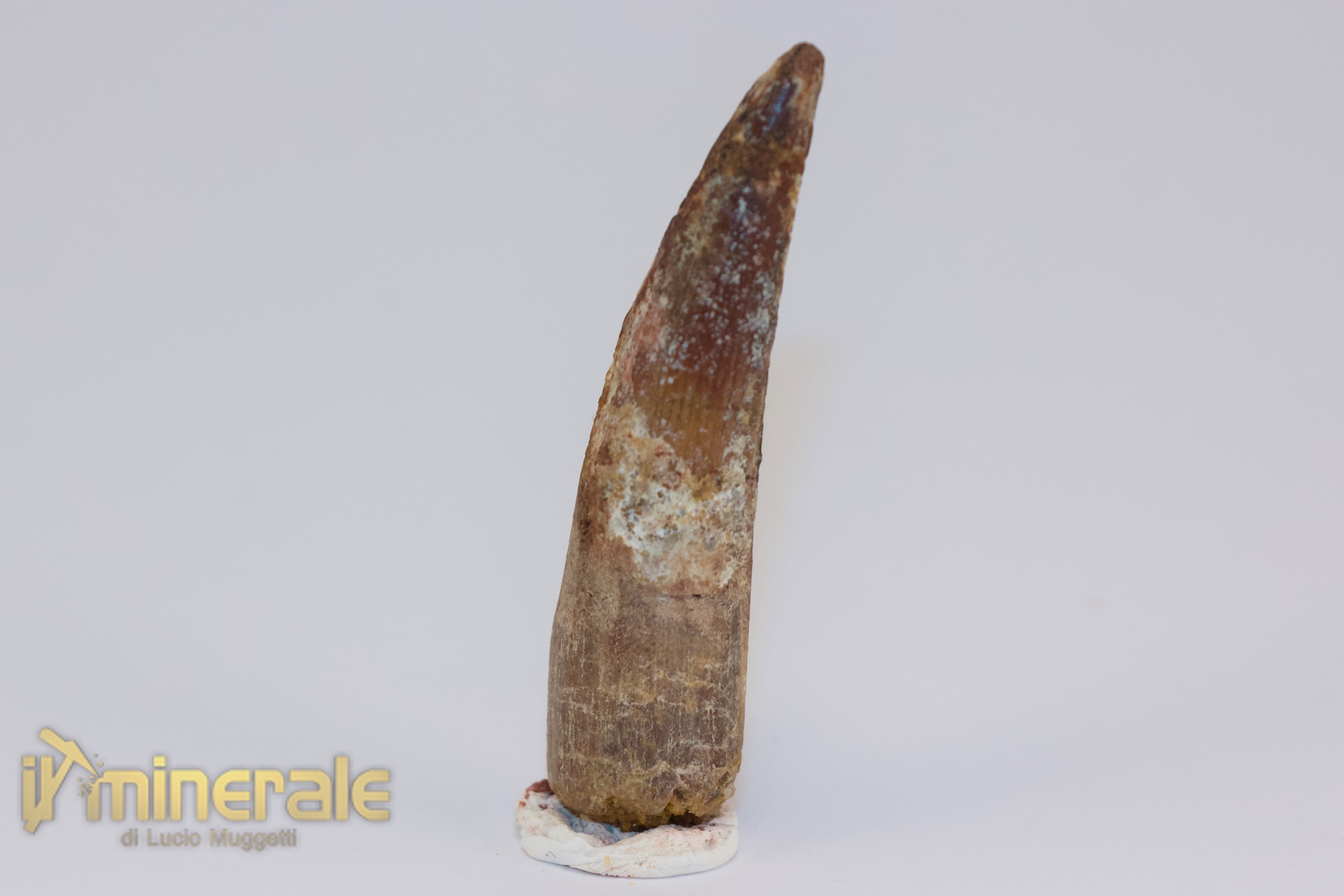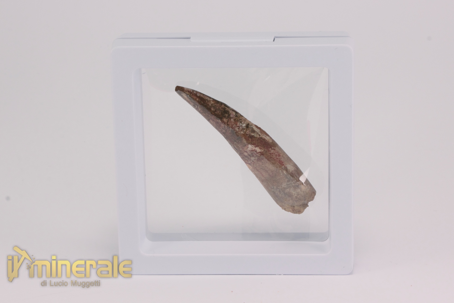 Dente fossile senza matrice di "Spinosaurus aegyptiacus" (gigantesco dinosauro carnivoro teropode). Il dente è integro