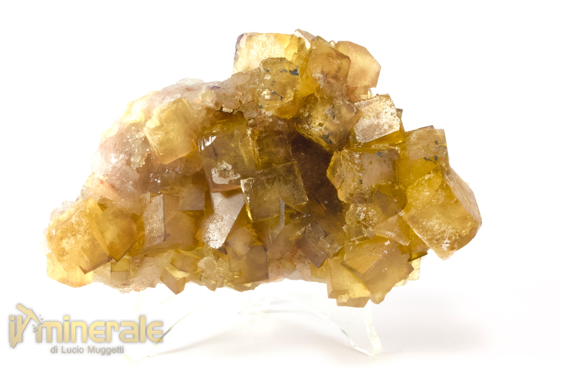 Fluorite gialla in cristalli centimetrici cubici fittamente compenetrati (Massimo 1,5 cm) con forte fluorescemnza viola