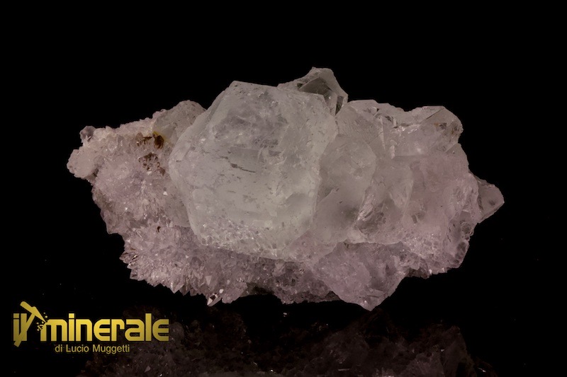 Fluorite in cristalli centimetrici (massimo 2,1 cm) cubici fittamente compenetrati, semitrasparenti di colore verde chiaro ed in associazione con fitti cristalli millimetrici di quarzo ialino