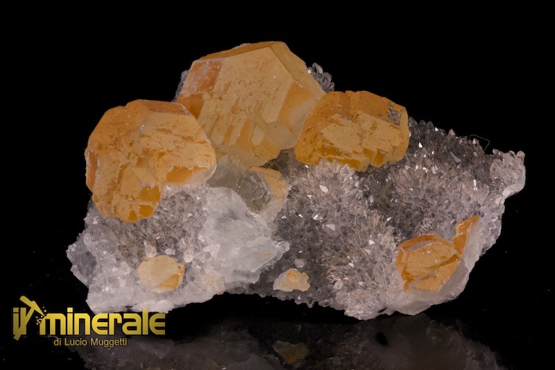 Fluorite in cristalli centimetrici (massimo 1,9 cm) cubici fittamente compenetrati, semitrasparenti di colore verde chiaro e parzialmente rivestiti da ossidi di ferro in associazione con fitti cristalli millimetrici di quarzo ialino