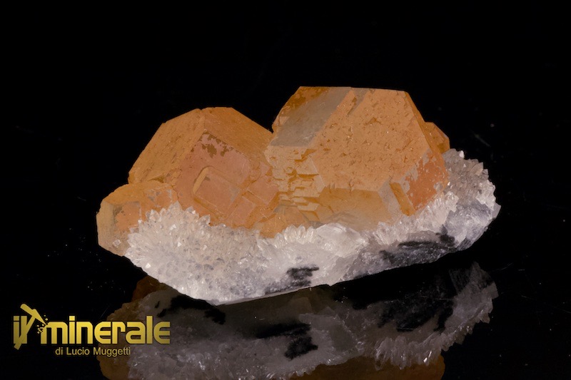Fluorite in cristalli centimetrici (massimo 2,4 cm) cubici fittamente compenetrati, semitrasparenti di colore verde chiaro e parzialmente rivestiti da ossidi di ferro in associazione con fitti cristalli millimetrici di quarzo ialino