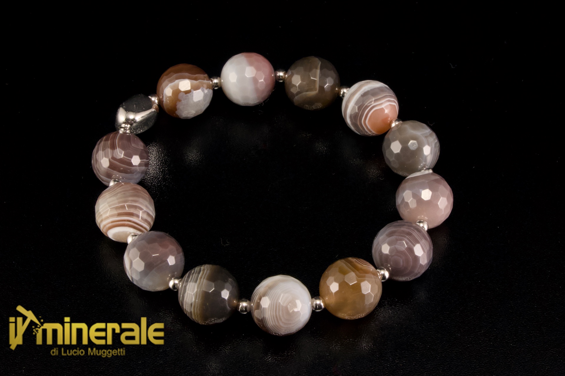 Bracciale elastico con sfere sfaccettate (12 mm) di agata