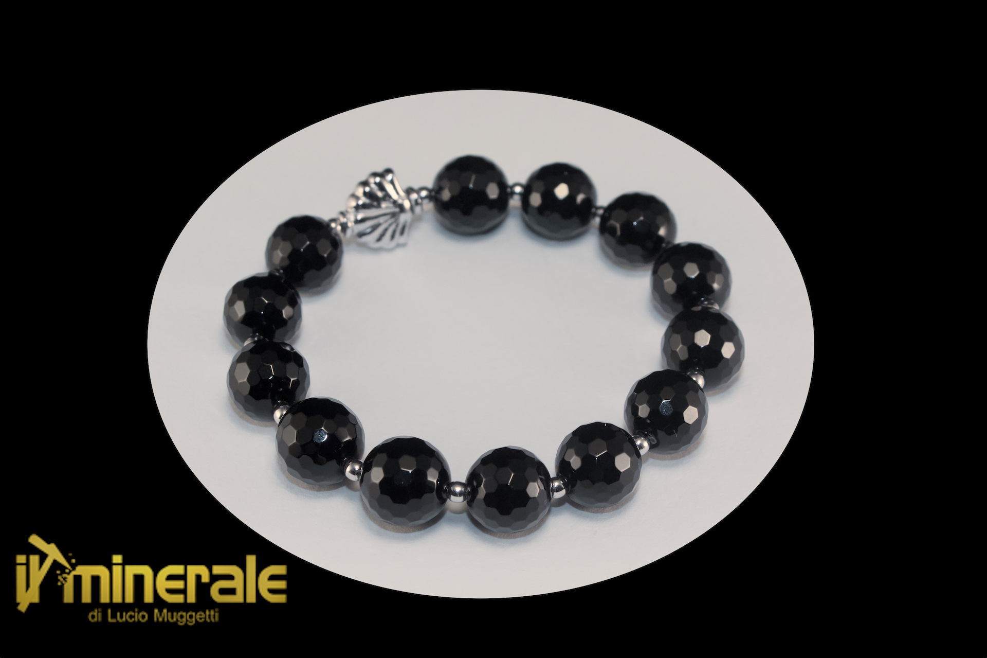 Bracciale elastico con sfere sfaccettate (12 mm) di onice