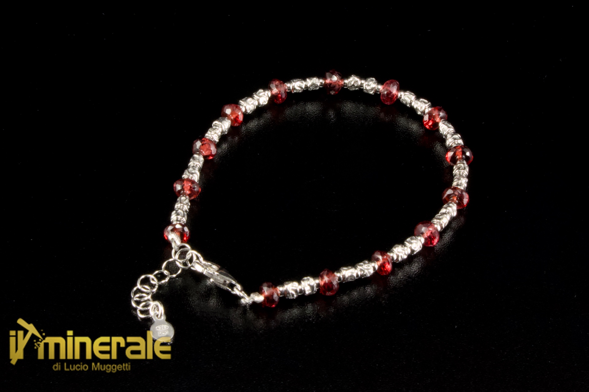 Bracciale con rondelle sfaccettate di granato del diametro di circa 5 mm