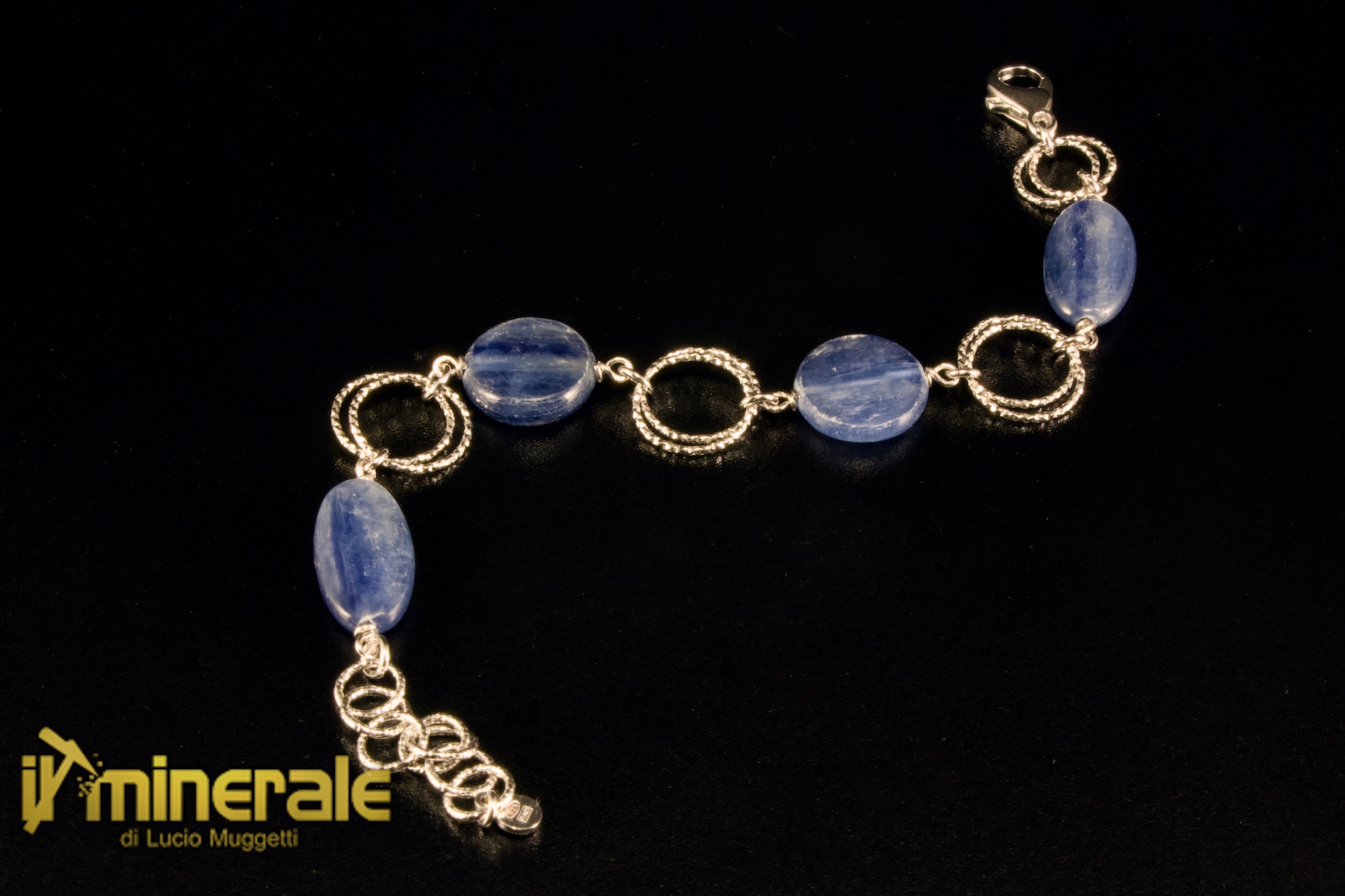 Chained bracelet in 925 rhodium-plated silver with round (14 mm) and oval (10x19) lenses of kyanite